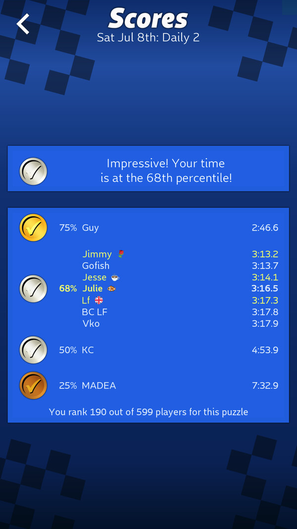 Easy at times, tricky too. Enjoy the four games a day!!! One of my favorites!!!