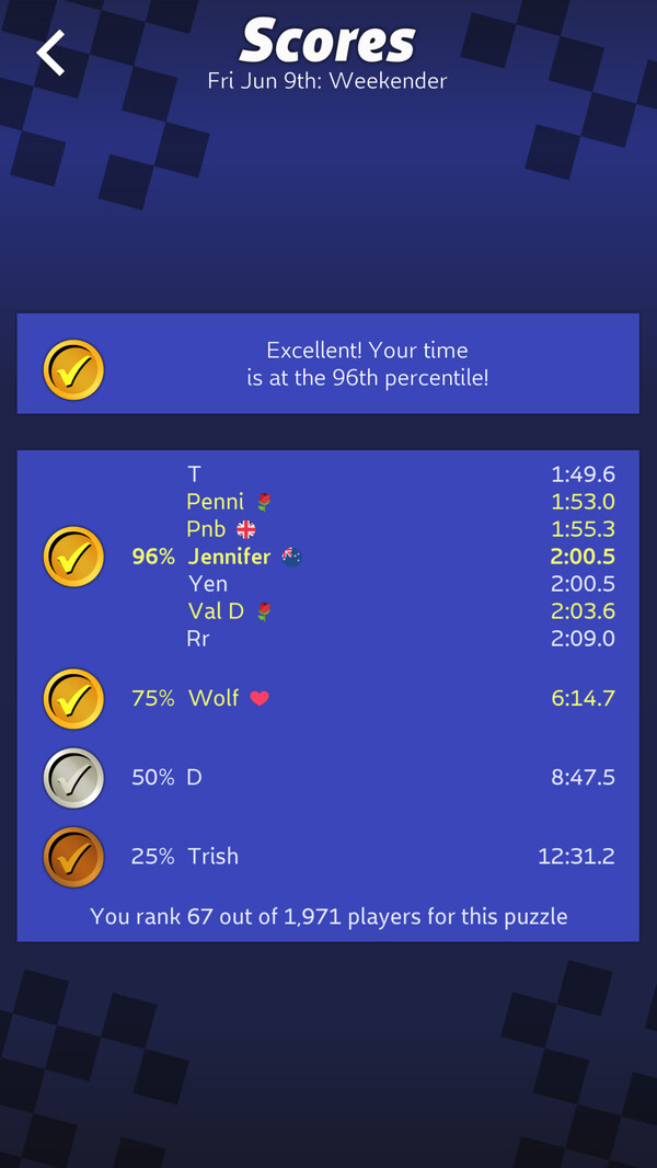 This is a fun word game that you can play by yourself if you have a few spare minutes. What makes it addictive is that there are daily challenges where you can see how your time compares with other players.