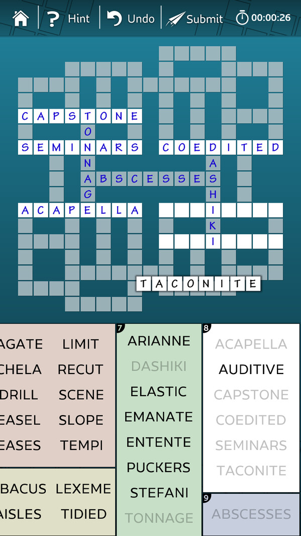 In each puzzle you are given a grid and a list of words, and it’s up to you to place the words in the right place! It starts simply enough until you find words that could fit in multiple places and you realize you need to think ahead.