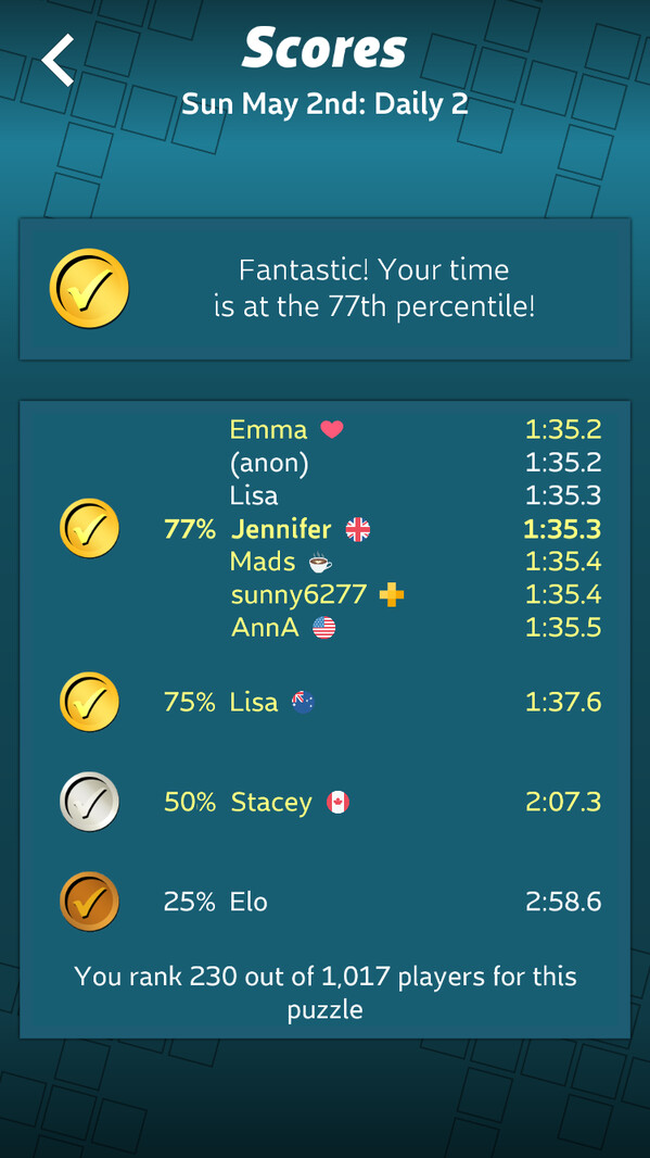 I use this app nearly everyday when traveling to work or just when I am sat and have 10 minutes. Highly recommended and great for keeping the mind active!