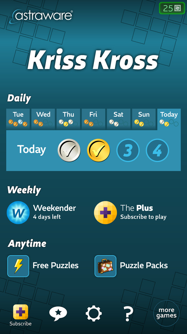 You get free unlimited access to play four new Daily puzzles each day – compete on the global leaderboard! For more of a challenge there is a free Weekender puzzle available each weekend with a bigger grid, perfect for solving leisurely on Saturday or Sunday morning, or even on Friday afternoon!